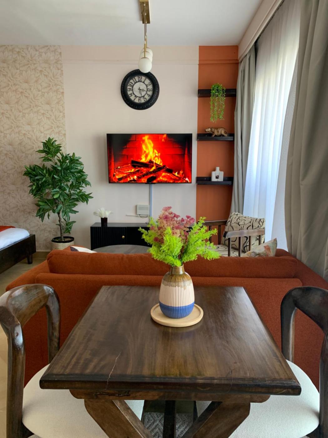 The apartment has 1 bedroom, a flat-screen TV with streaming services, a fully equipped kitchen with a microwave and a fridge, a washing machine, and 1 bathroom with a bath. Naze Afro-Chic close to JKIA and SGR is allergy-free and soundproof.